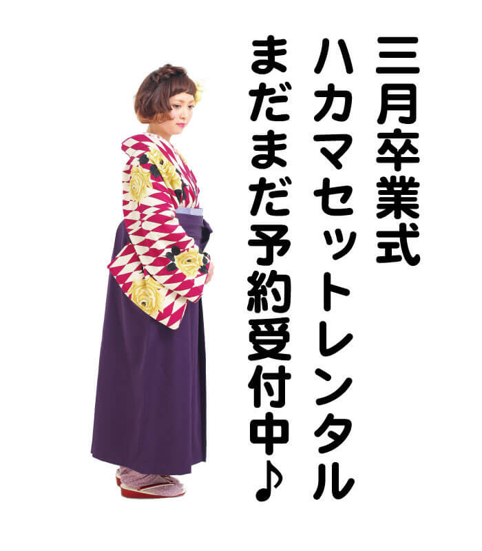 意外とまだ卒業式のことは特に考えていなかったという方もいらっしゃいます、思い出の詰まった学び舎を後にする最後の記念です、袴スタイルで良い思い出にしてください。美容室もご紹介できますので、全くノープラン!って方もお気軽にどうぞ。