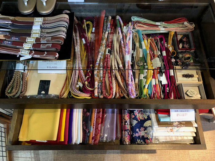 あと、以前は力を入れてましたが、最近はこの辺の和装小物も少ないです、帯締め帯揚げなどの小物類は、髪飾りを強化するにあたって場所の問題もあり徐々に少なくなっています、今後も増えることはないと思うので、今あるもので気に入っていただければそれは買いですよ!!