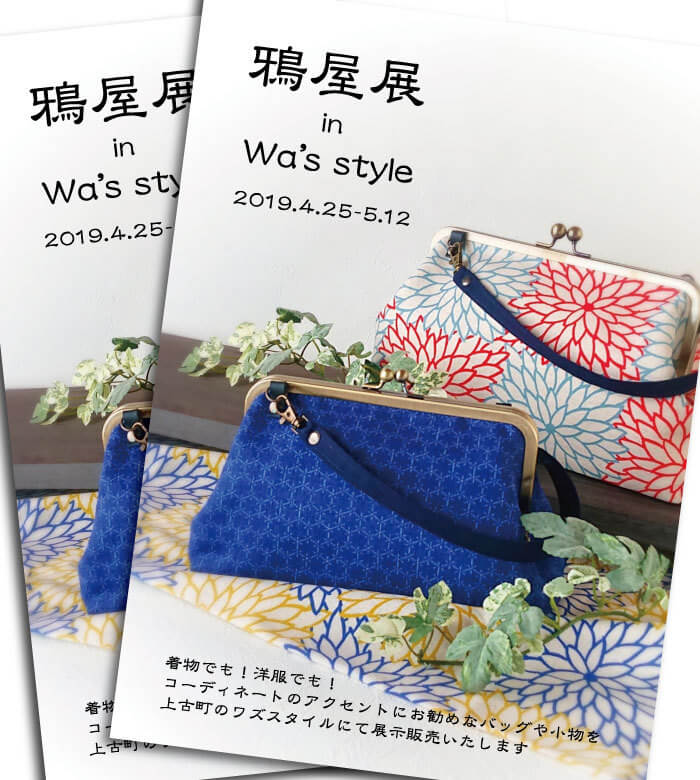 GWといえば、一般的な10連休中でワズのお休みは4月30日だけです、他の日は全てやっておりますのでぜひぜひお越しください、4月25日から鴉屋さんとのコラボ展も開催してますので、可愛いバッグを見にきてくださーい!!
