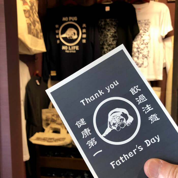 さて、タイトルの父の日ですが、6月16日です、今まではワズスタイルとしては全く無関係と思われていた父の日のプレゼント、まあ、たまに雪駄とか扇子とかありましたが。今はパグ好きなお父さんにパグTシャツなどがあるんです!!すでに「父の日用です」ってご注文も増えているんです、2年前くらいまでは考えられなかったことがおきてます。