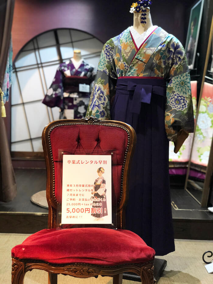 さてさて、ゆかたレンタルの試着も増えてきましたが、卒業式レンタルも多いです、もう卒業式のキモノを決めるの?と思われるかもですが、もう決める方が多いんですよ。