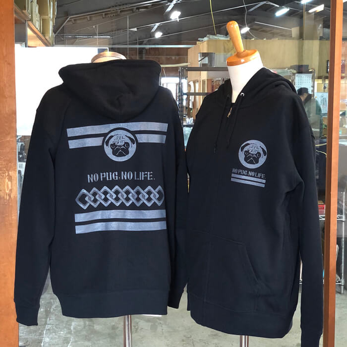 パーカーも完成しまして、毎日ネットで注文が入りますので毎日発送しております、ありがとうございます。全国のパグ好きさんがボクのデザインしたパーカーなどを着てくれていると思うととても嬉しいです。